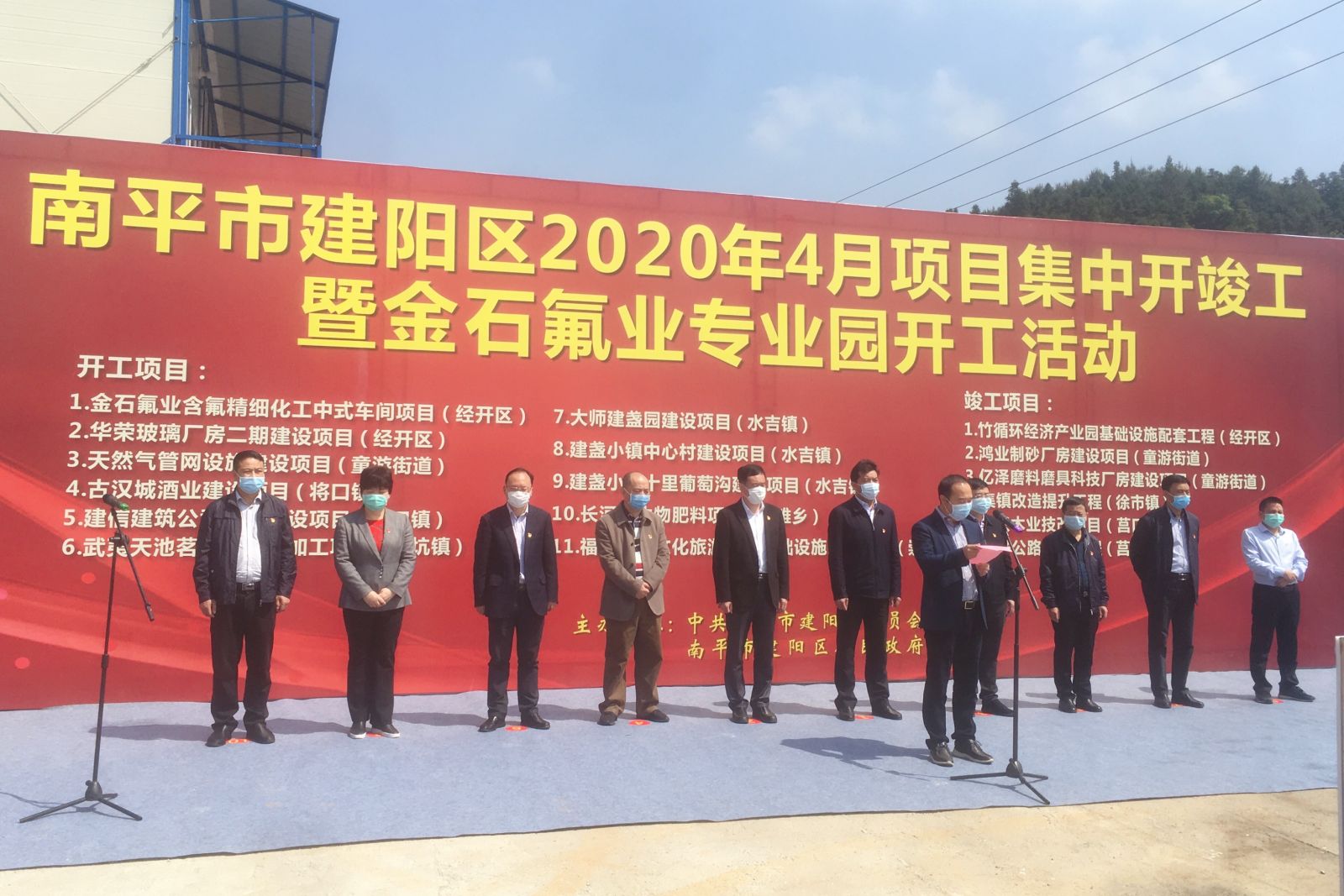 4月24日,我區(qū)舉行4月份重大項目集中開竣工儀式。南平市副市長何明星,建陽區(qū)委書記楊新強、區(qū)長魏敦盛等區(qū)黨政班子領(lǐng)導(dǎo),區(qū)直有關(guān)單位、項目業(yè)主單位主要負責(zé)人和監(jiān)理單位、施工單位代表參加活動。儀式現(xiàn)場,何明星宣布項目開工,楊新強致辭,魏敦盛主持,公司董事長陳建華代表項目業(yè)主發(fā)言。